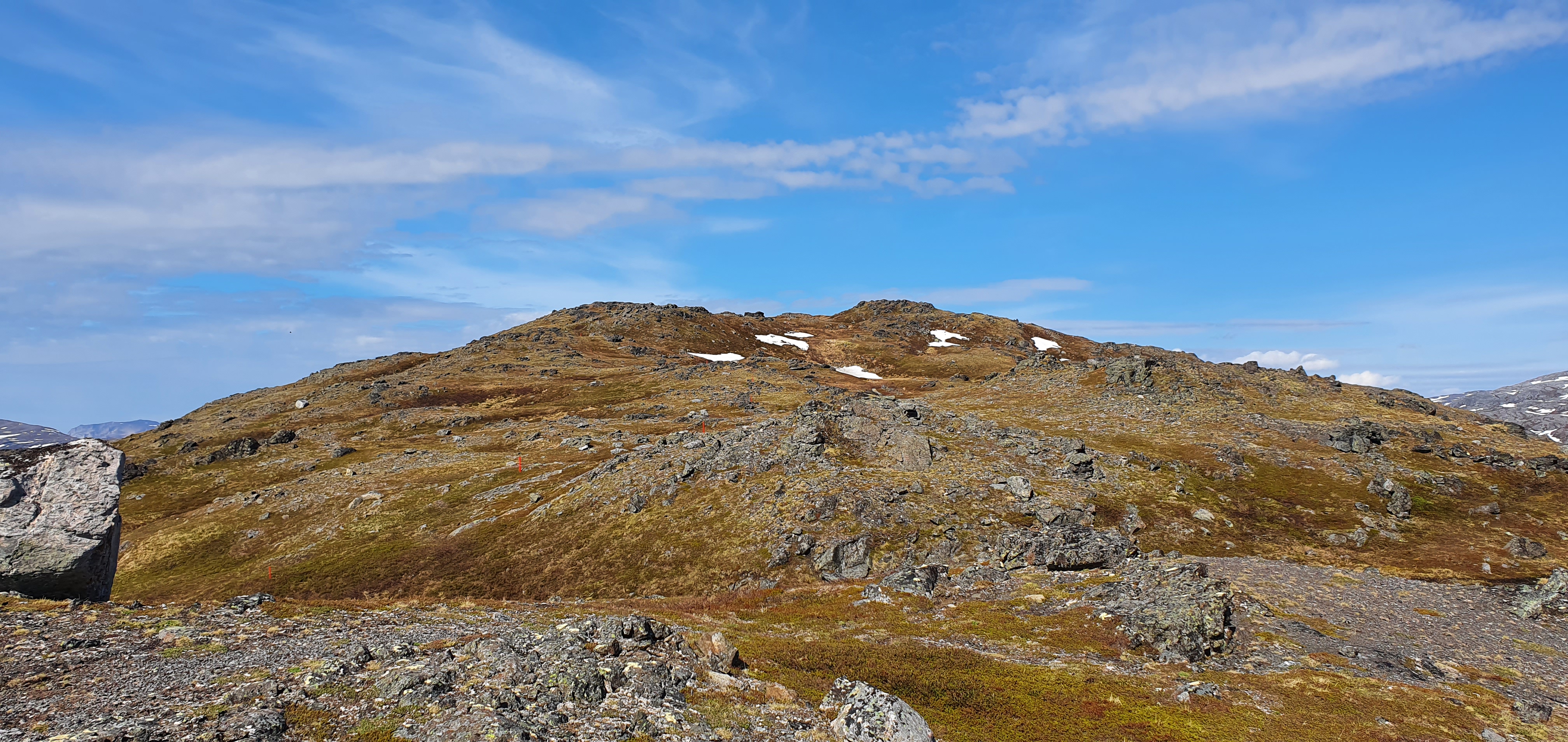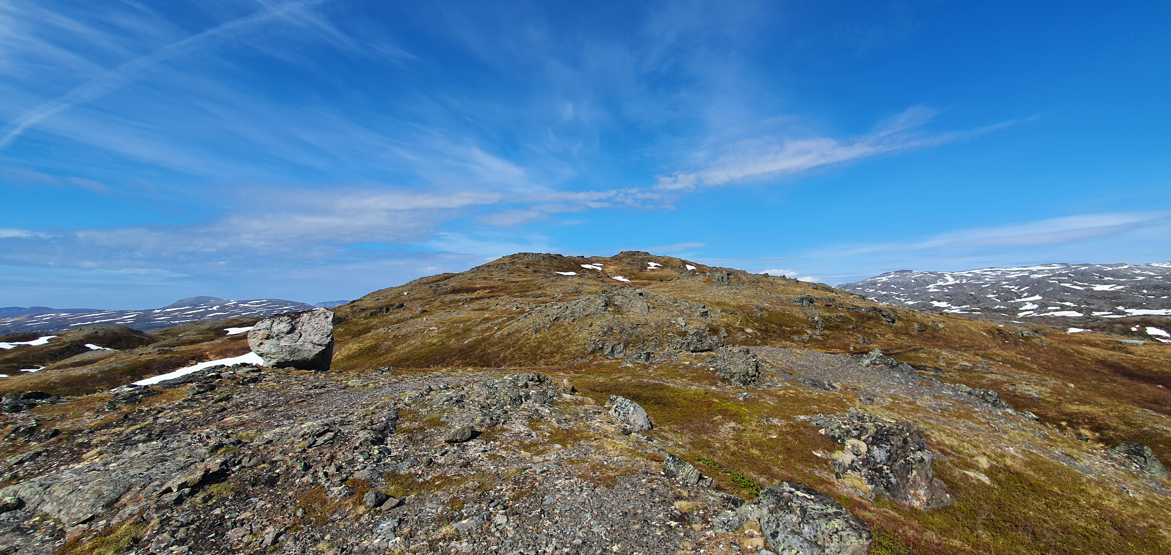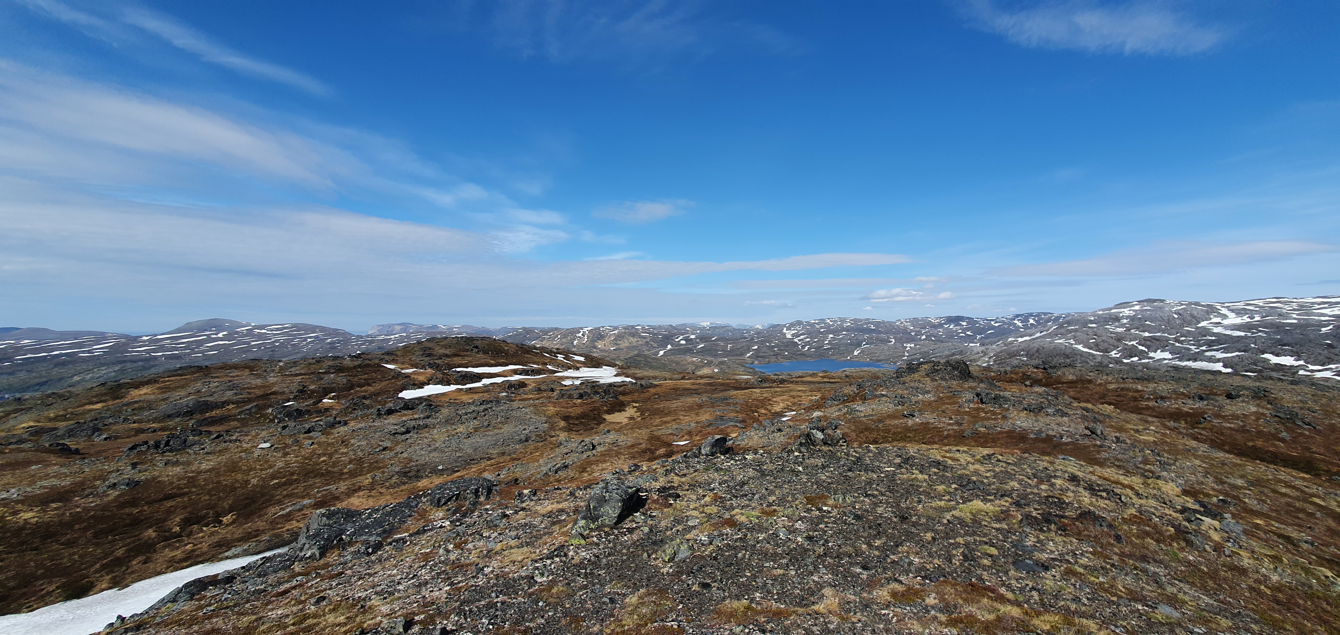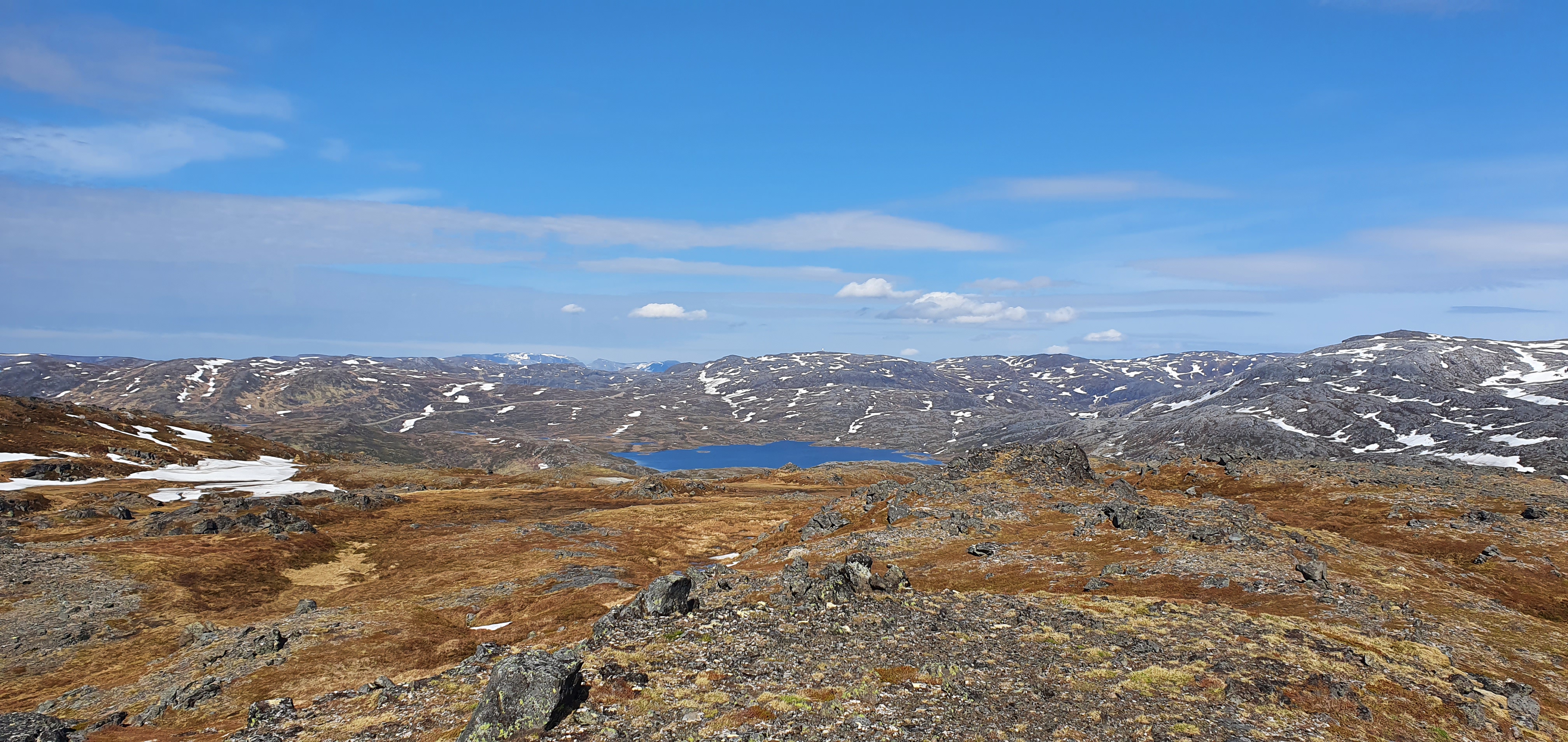 Fjelllandskap, berg, steiner, vann og myr. God utsikt stort sett hele turen.
