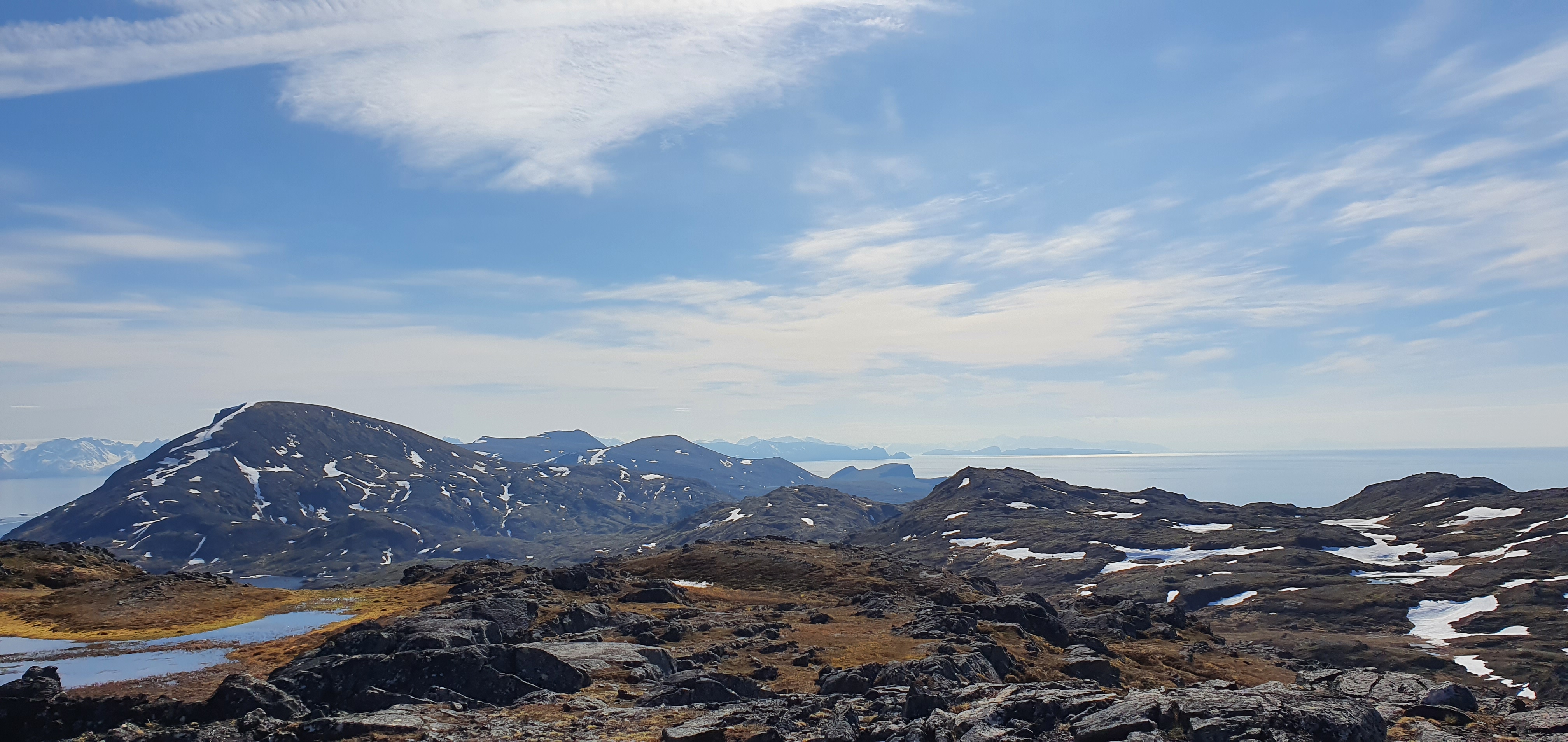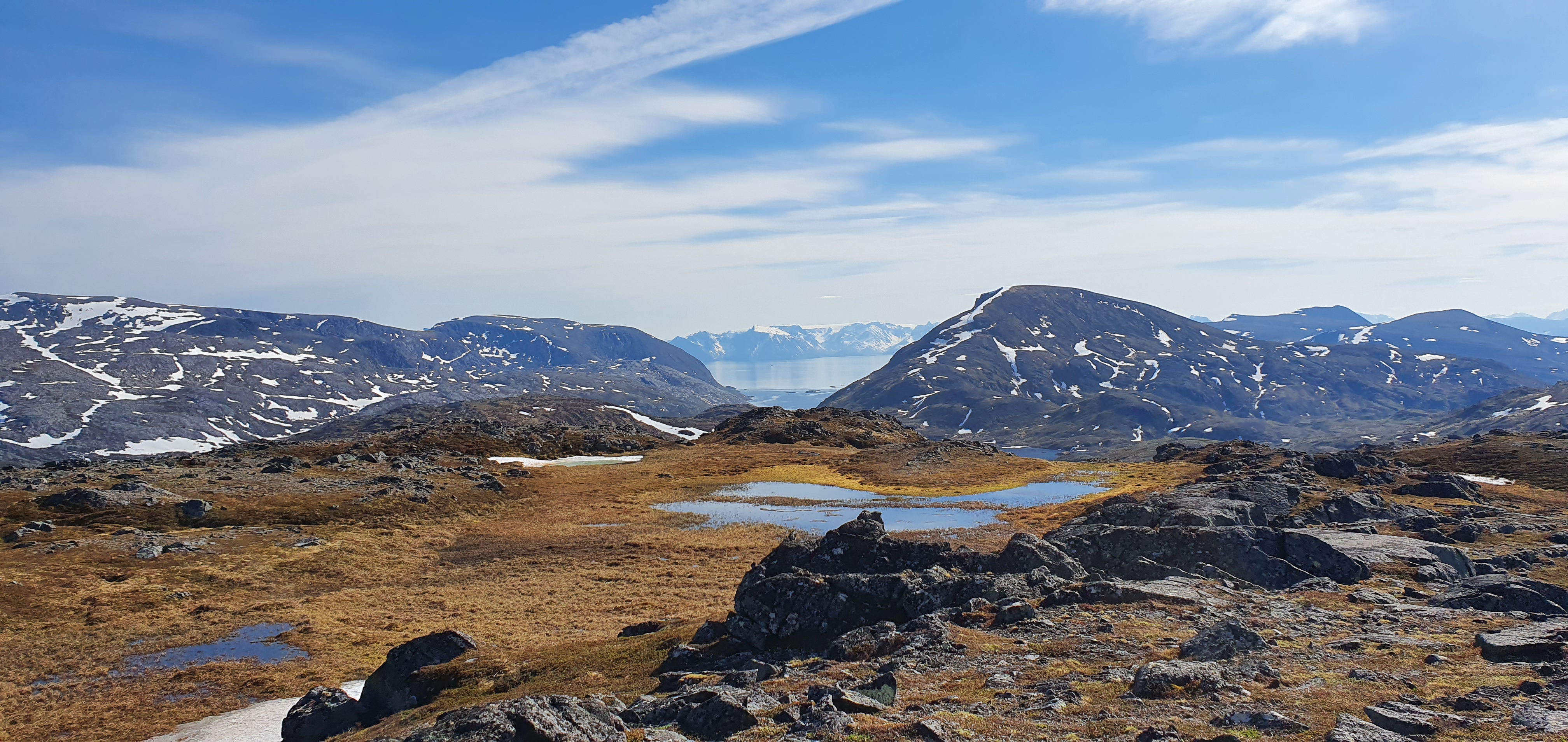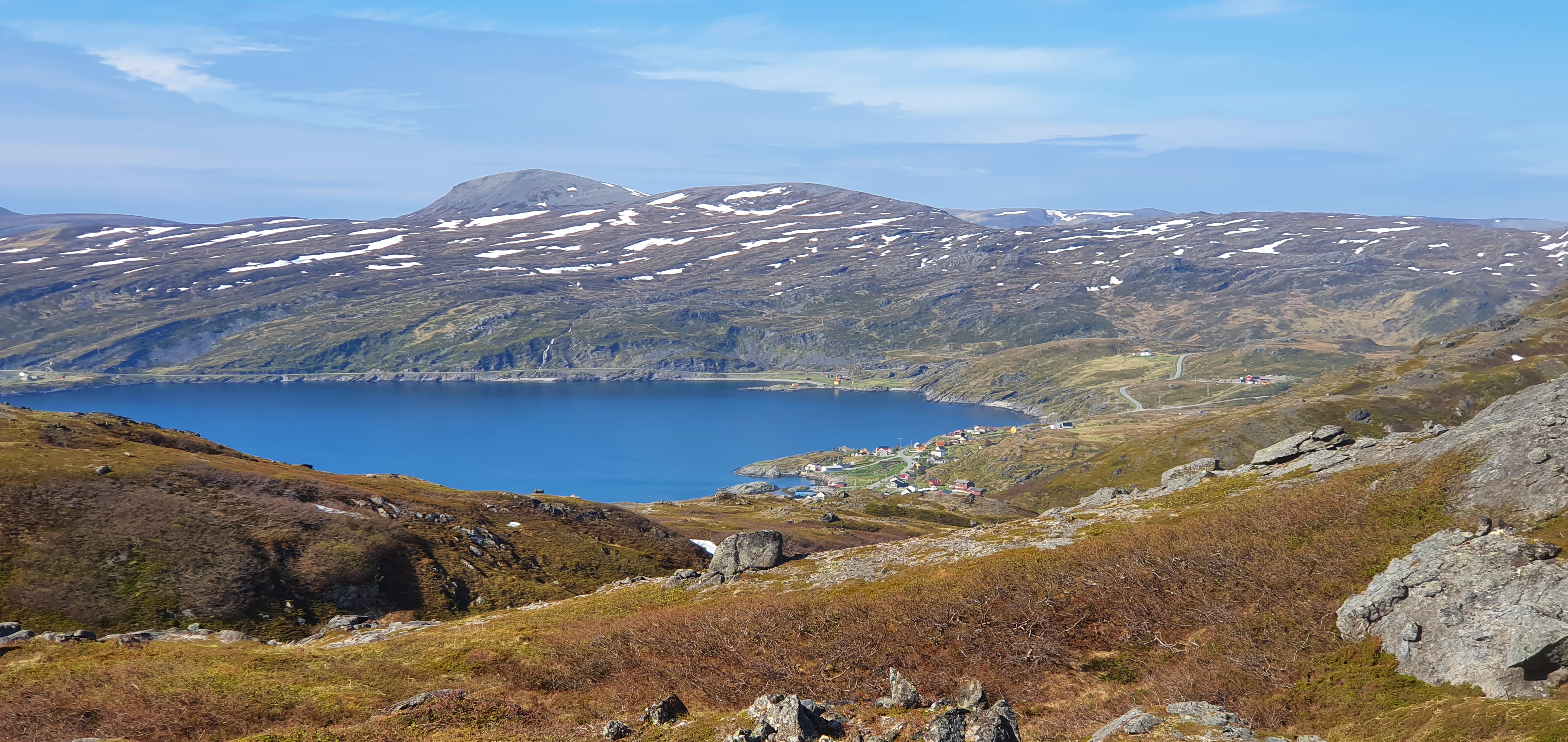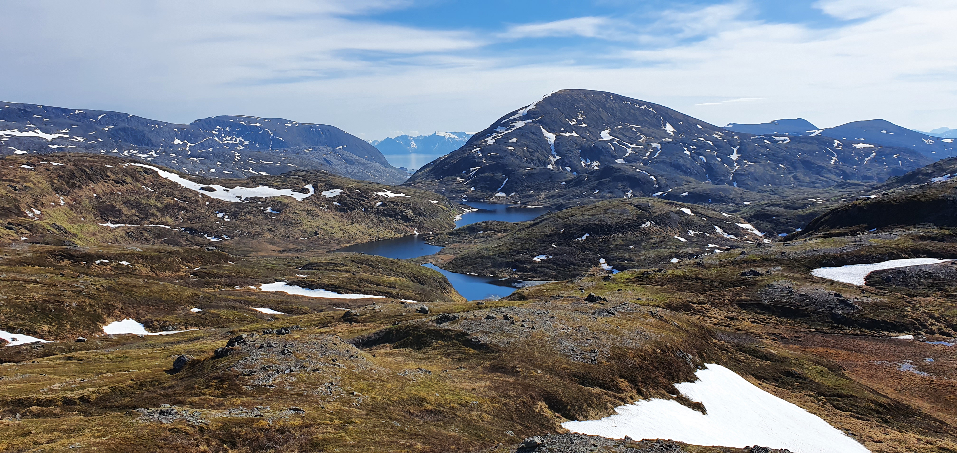 Fjelllandskap, berg, steiner, vann og myr. God utsikt stort sett hele turen.